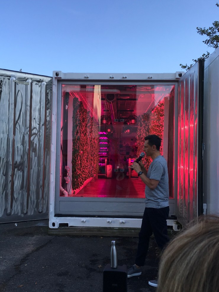 This is Square Roots. I went to a presentation they made last night. They have a 20 acre farm operating in a parking lot in Brooklyn. Their “farm” consists of 10 insulated shipping containers with high tech systems set up in each for hydroponic farming.
