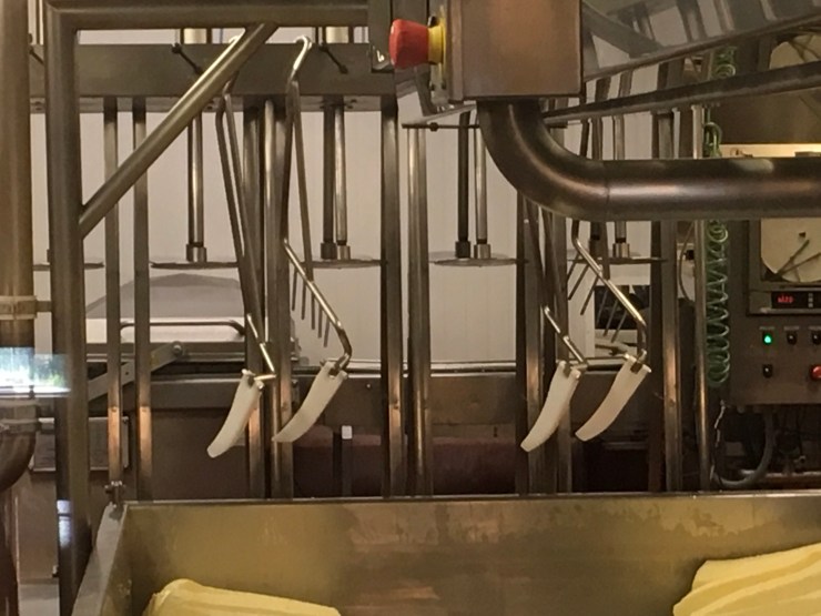 The vat in the back is “cooking” the milk with the bacteria and rennet.