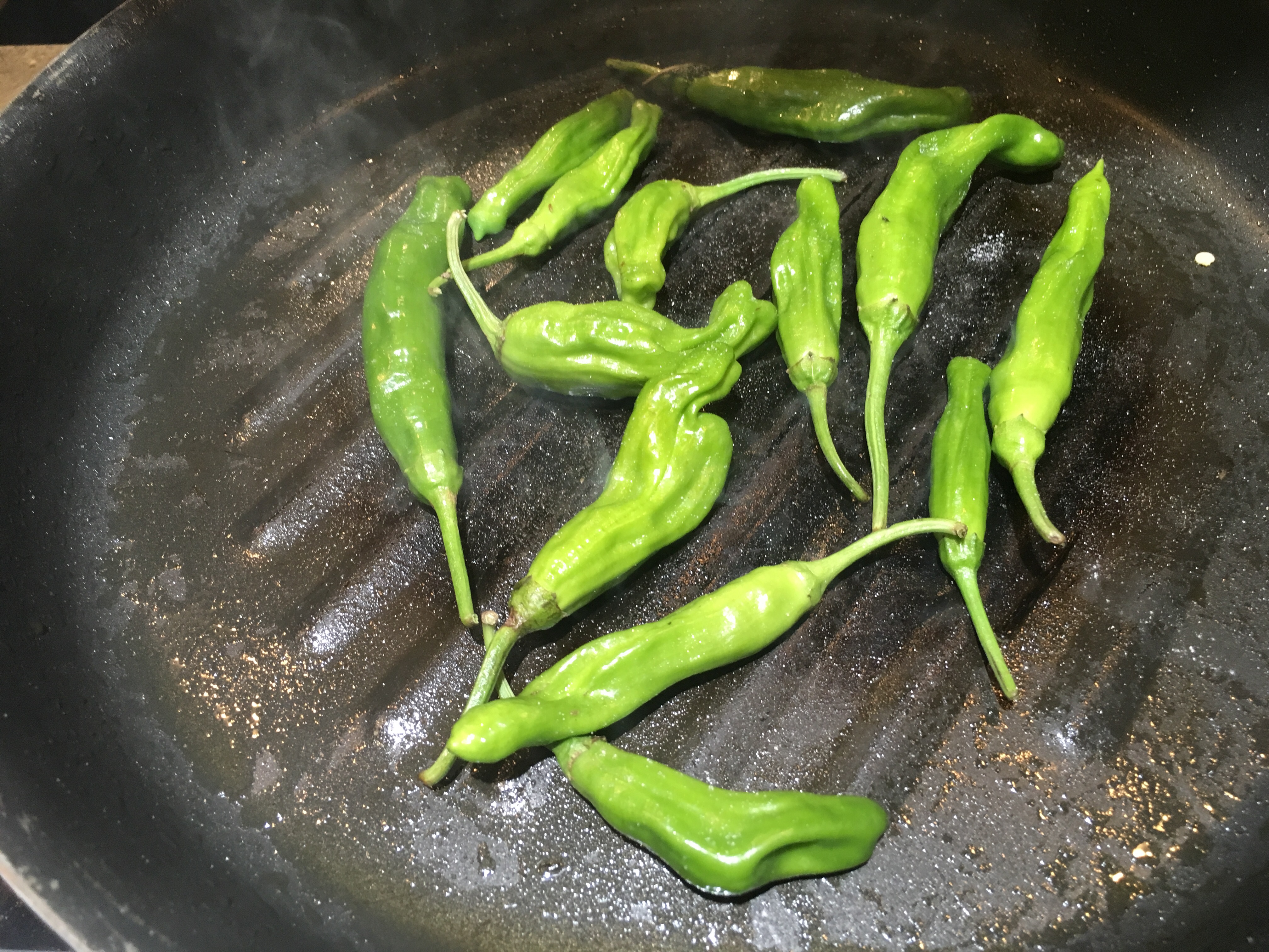- Organic Shishito Peppers lightly friend in EVOO, lightly salted and just a dash of sesame oil.