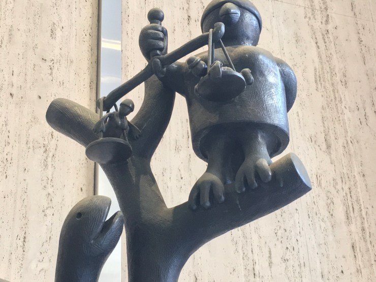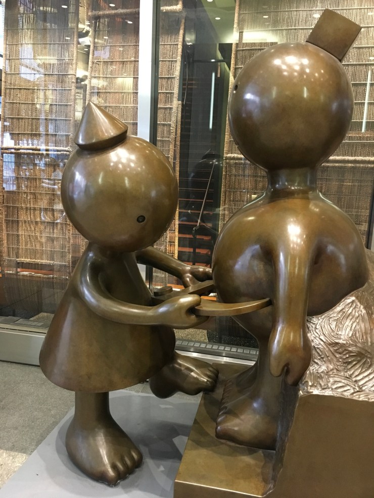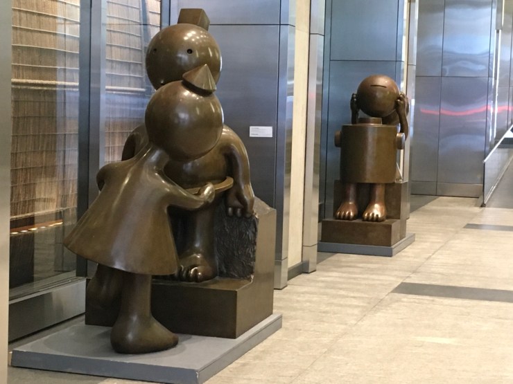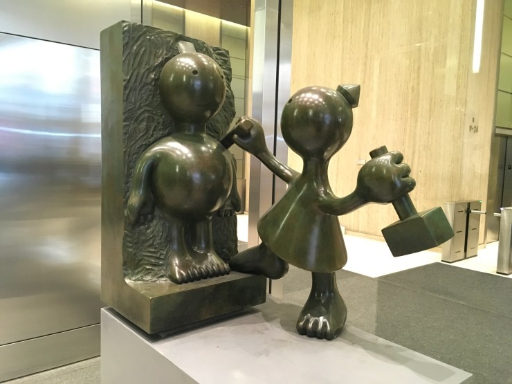 These later Tom Otterness sculptures have nothing to do with Money, like the early ones, yet they clearly deal with another type of power. Emotion. Sad, Lonely, Love, Service, Companionship, Justice, Playfulness…. What do you see in these?