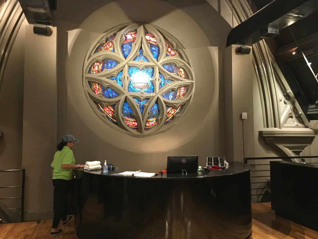After it was closed by police, several times under DA Rudy Guiliani’s scorched earth policy – and Peter Gaeten died, it became a food court. Grimaldi’s which is a famous NY Pizzeria opened an outpost in the rectory, which is still there. Currently the space (which is HUGE) was taken over by a Gym – called the Limelight Gym. My trainer and I worked out there several times.